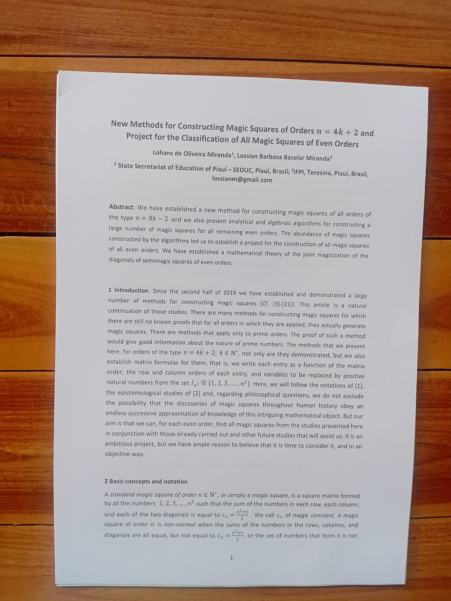 New Methods for Constructing Magic Squares of Orders n=4k+2 and Project for the Classification of All Magic Squares of Even Orders